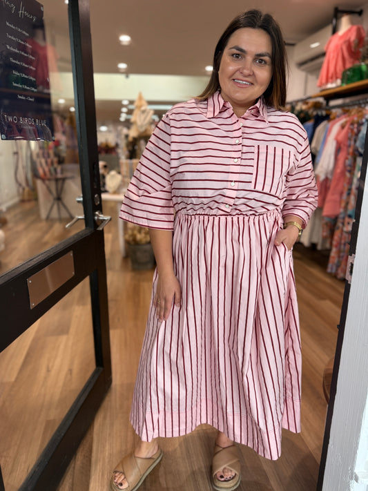 Charlotte Maxi Dress - Mad Hatters Pinstripe