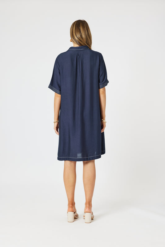 Top Stitch Dress- Navy