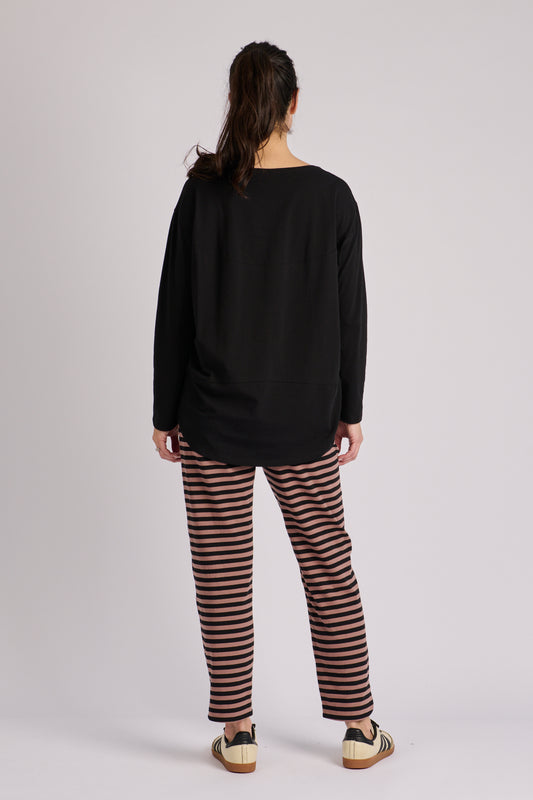 Long Sleeve Scoop Hem Top - Black