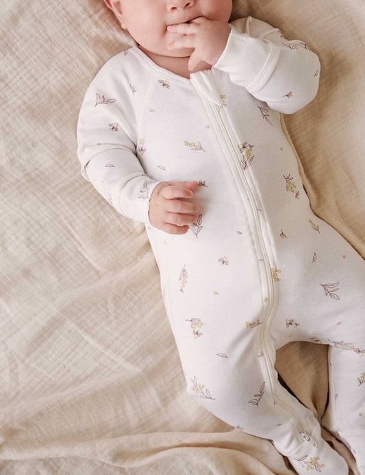 Pure Baby Zip Growsuit - Vanilla/Wattle Bee