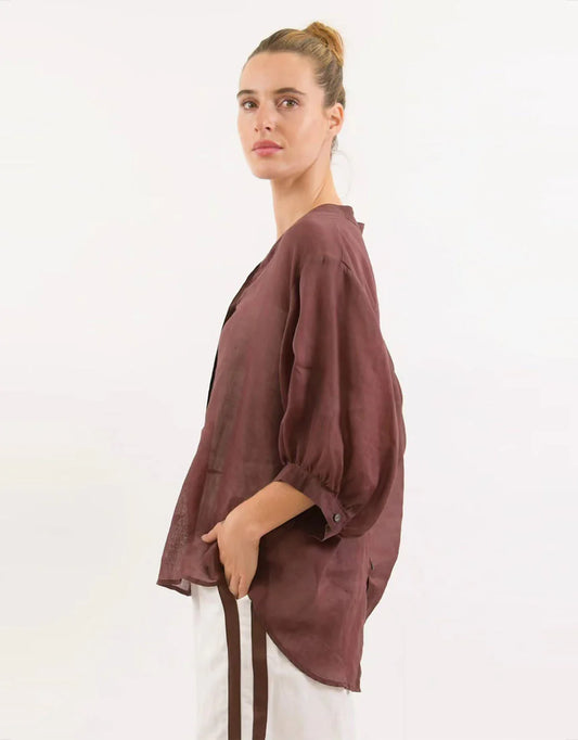Worthier Linen Shirt - Choc