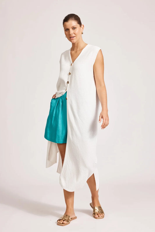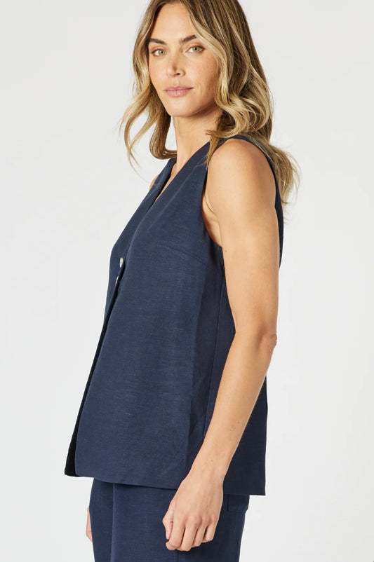 Lino Long Vest- Navy