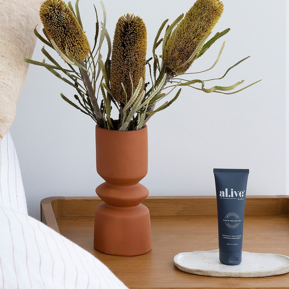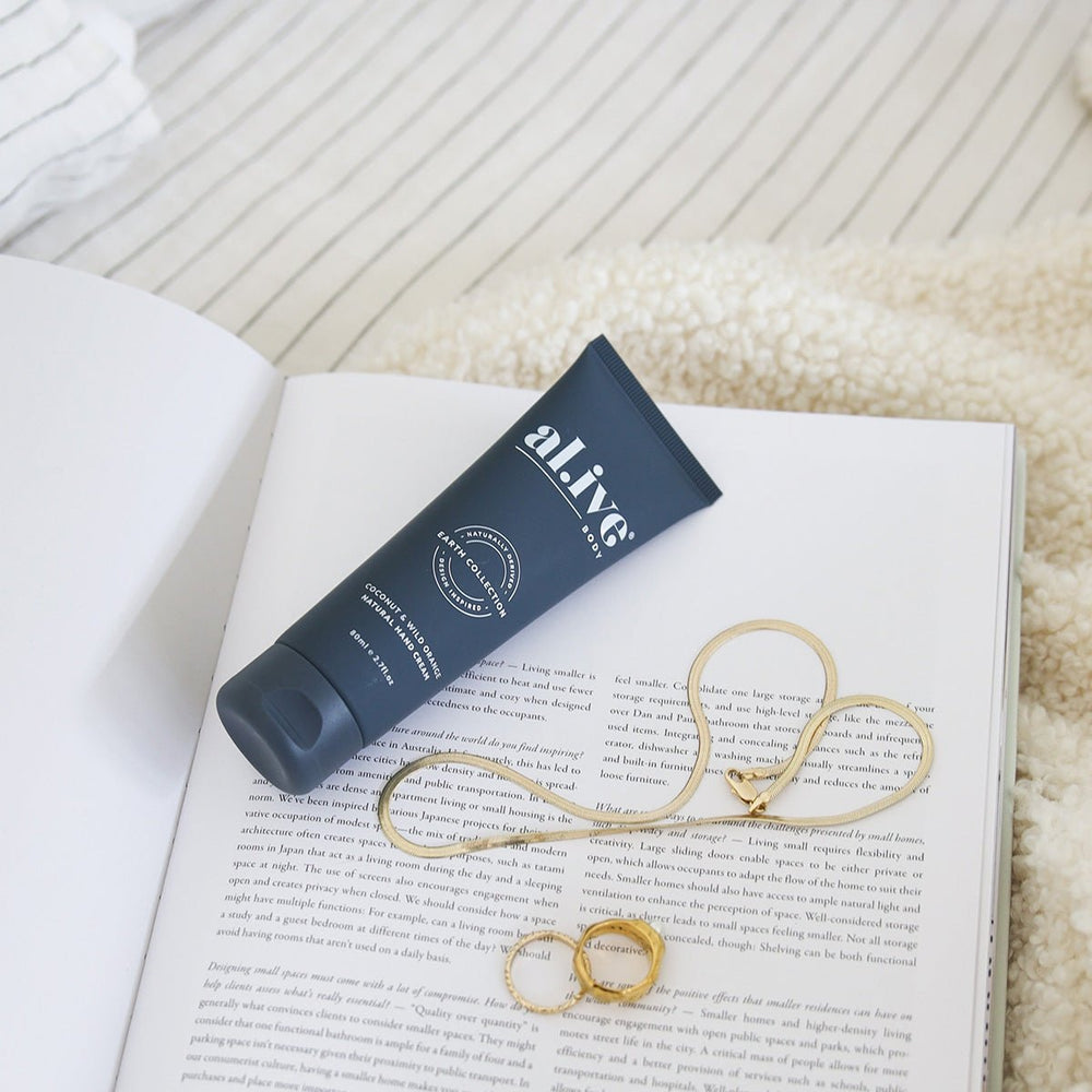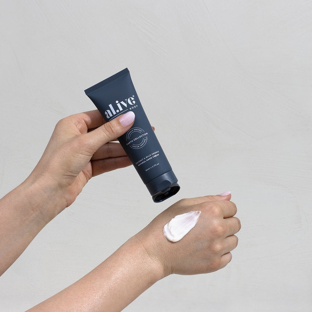 The al.ive body Hand Cream in Coconut & Wild Orange nourishes skin and imparts hands with long-lasting moisture.