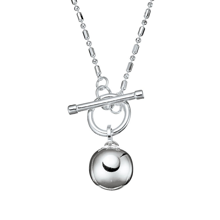 Elevate your style with the Allure Fancy Chain featuring a unique fob and ball pendant in shining silver. Perfect for adding a playful touch to any outfit.