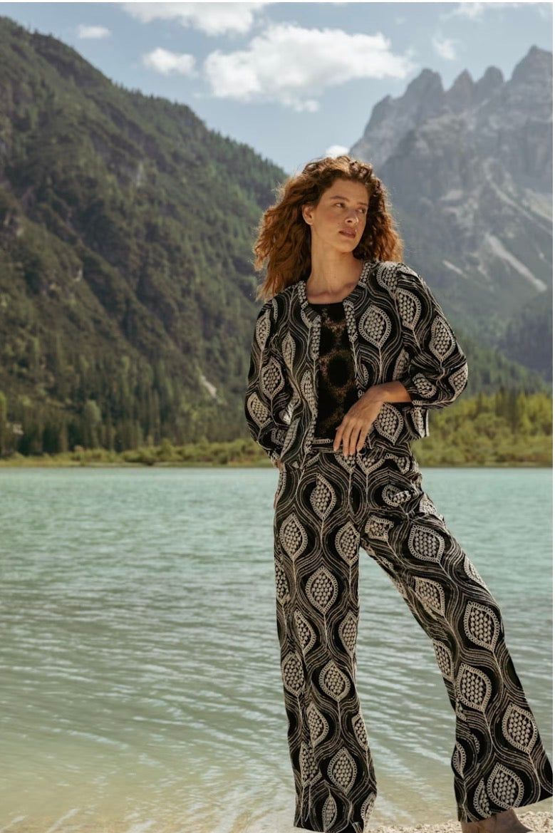 Lulu Trousers in classic black, adorned with exquisite embroidery that commands attention. Crafted for the discerning wearer, these show-stopping trousers seamlessly blend refined elegance with artistic detail. The intricate embroidered accents transform a timeless silhouette into a statement piece, perfect for occasions where you want to make an unforgettable impression. Sophisticated, distinctive, and undeniably captivating.