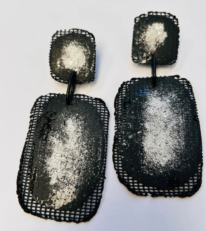 These statement earrings, Deb's current favorites, add a little edge and punk to any outfit. Made in Melbourne, they feature a unique and bold design with mesh and resin powder pigments. At 10cm in length, they are lightweight and perfect for any occasion.