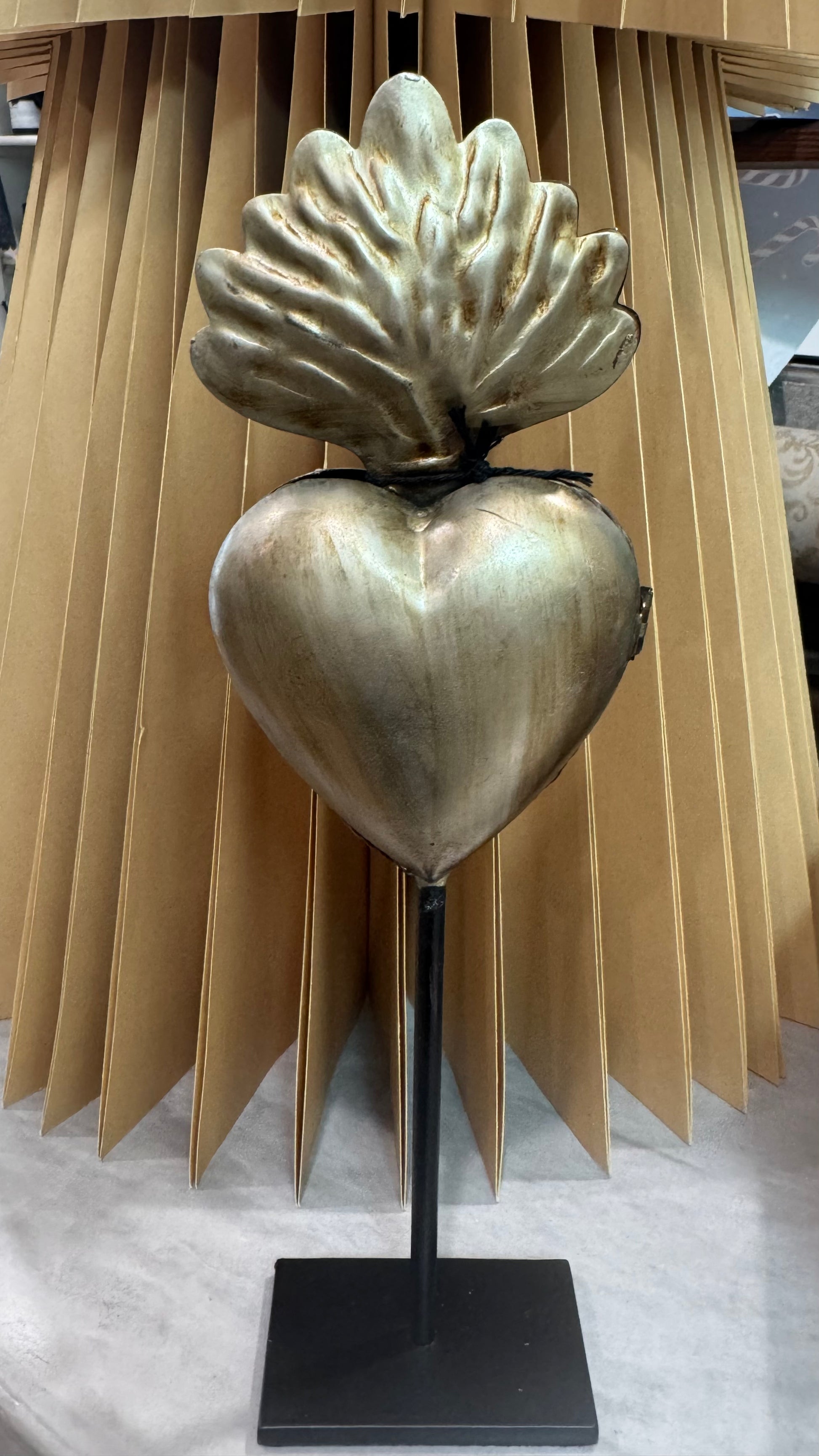 This exquisite bronze-etched heart, elegantly mounted on a sleek black base, is both a beautiful table decoration and a functional keepsake holder. The heart opens delicately to reveal a hidden compartment, perfect for storing cherished mementos. Its refined design makes it a timeless addition to any sophisticated interior.