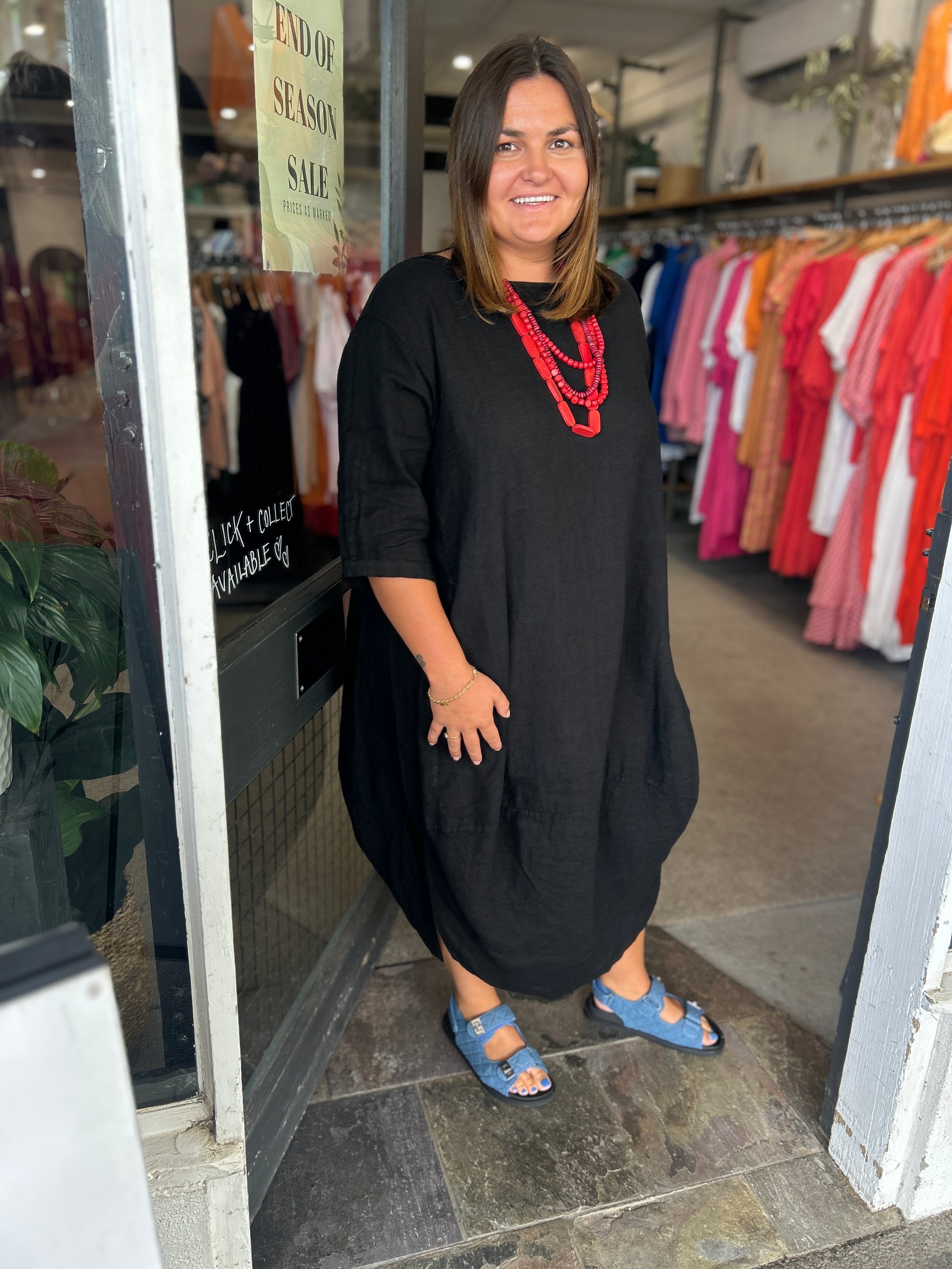 Our best-selling casual linen dress is designed to drape elegantly. Featuring a scallop edge to create a flattering line it takes on an almost sculptural look. An easy-to-throw on style that instantly looks pulled together - we love it paired with sneakers, boots, or heels - it's that versatile. Made from the softest Italian linen, it's breathable and comfortable.