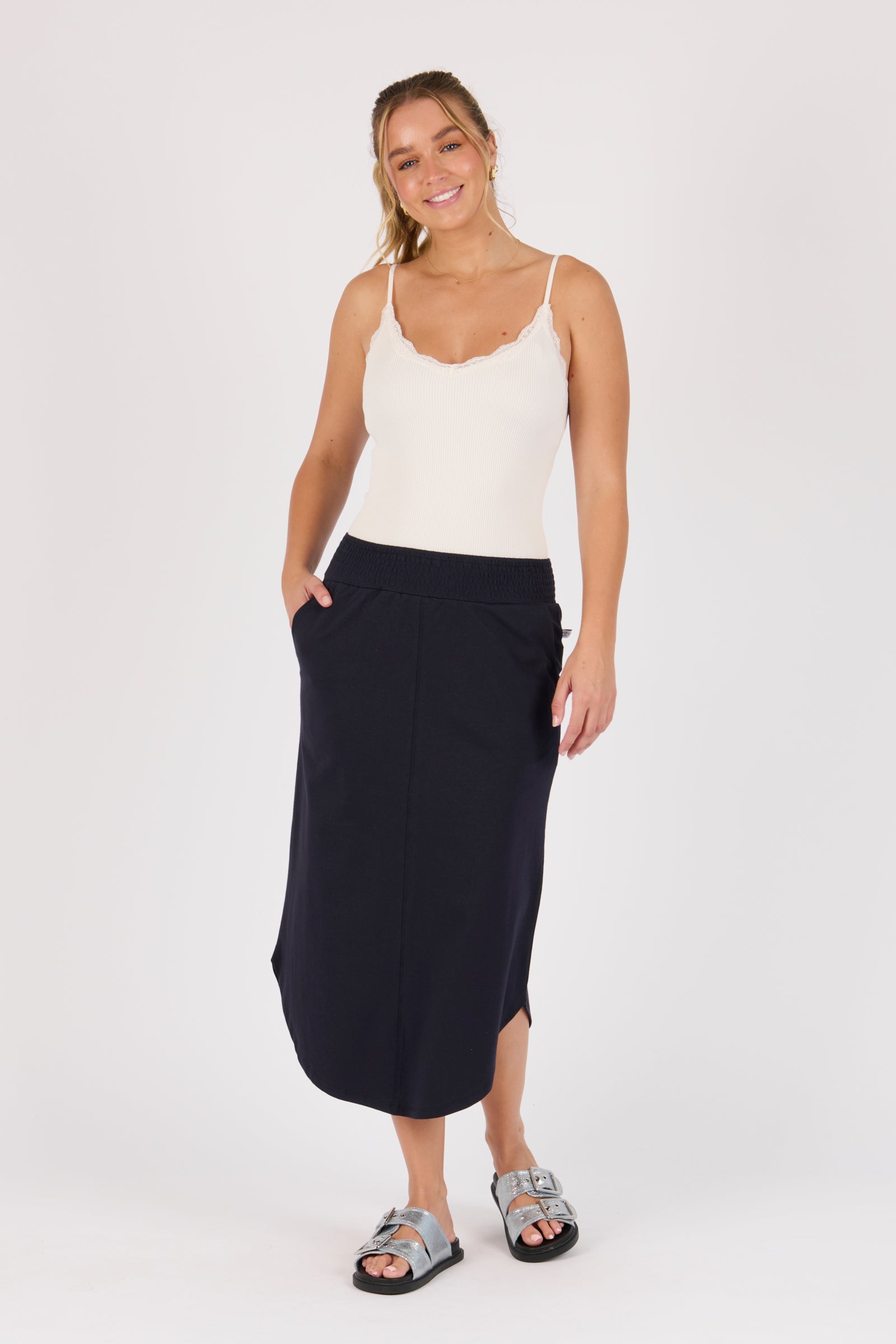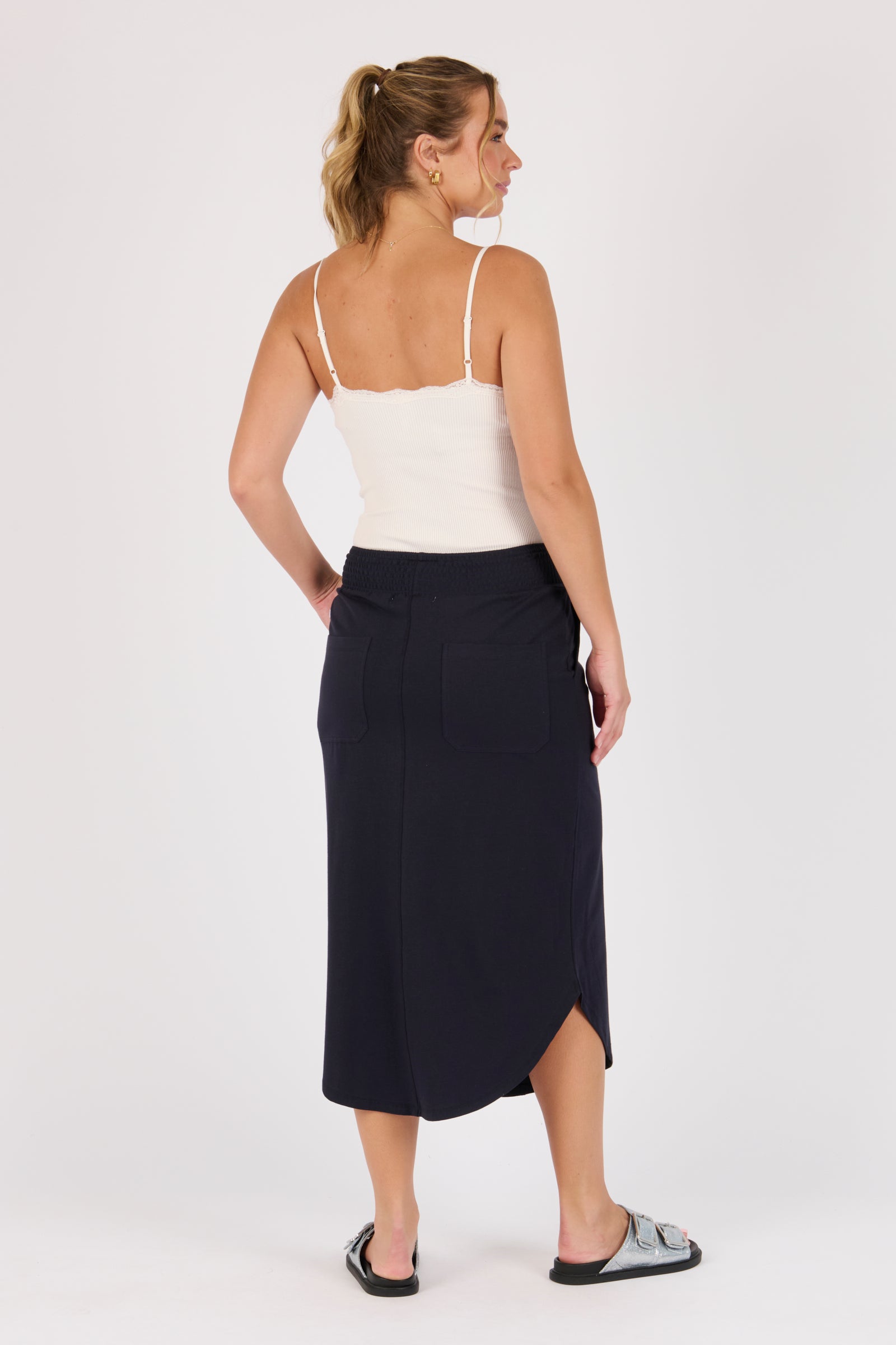 Scoop Hem Skirt- Blue Graphite